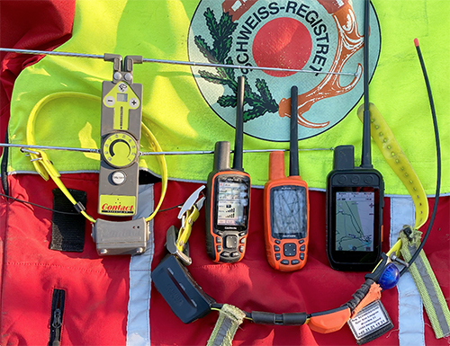Det er ingen tilfældighed at alle de danske reg. schweisshunde, i dag er udstyret med et Garmin T5 halsbånd, mens den reg. schweisshundefører kan følge hundens færden på sin håndholdte Garmin Alpha 50, Alpha 100 eller Alpha 200i, når hunden er sluppet til hetz.